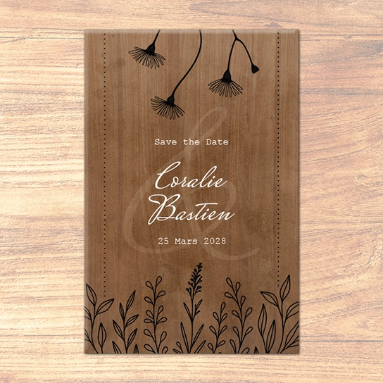 Ce Save the Date « Terracotta Nuit » mêle élégance et modernité. Avec son fond terracotta profond, sa fenêtre arquée lumineuse, et sa fleur minimaliste, il met en valeur votre photo de couple avec douceur.