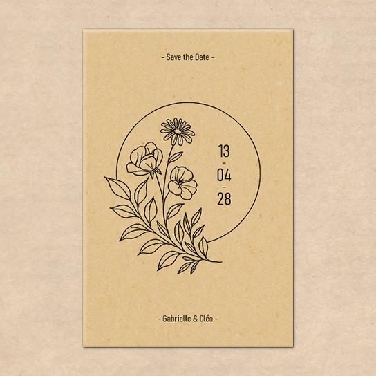 Ce Save the Date « Terracotta Nuit » mêle élégance et modernité. Avec son fond terracotta profond, sa fenêtre arquée lumineuse, et sa fleur minimaliste, il met en valeur votre photo de couple avec douceur.